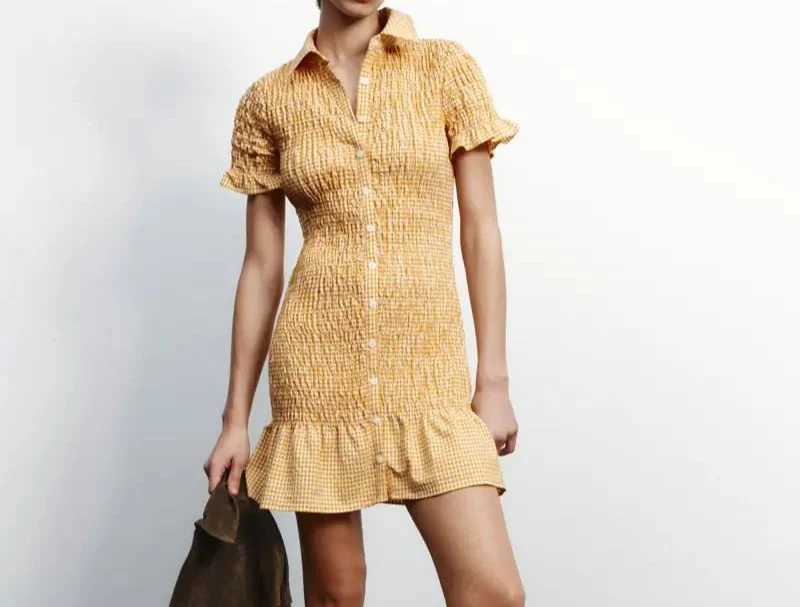 Si hay un estampado que nunca falla en verano, ese es el vichy. Ligado al estilo chic francés, ha conquistado los armarios de mujeres elegantes temporada tras temporada. La marca española recupera este clásico con un vestido que, por su frescura y su diseño coqueto, promete ser uno de los más deseados del verano. El modelo, con tejido elástico tipo nido de abeja y volantes en el bajo, se adapta a la silueta de manera favorecedora sin resultar ajustado.