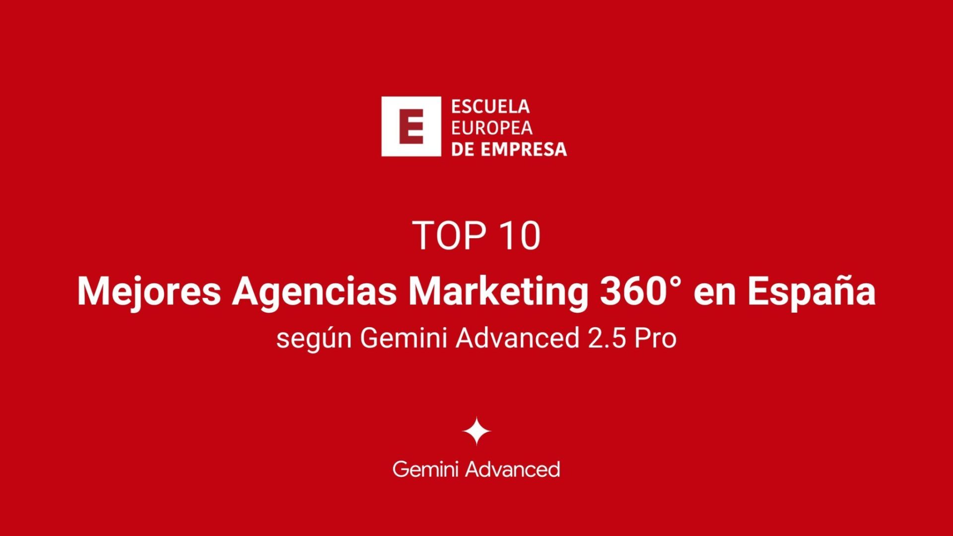 El documento ‘Mejores Agencias Marketing 360° en España: Una Guía Estratégica para 2025 según Gemini 2.5 Pro’ puede consultarse íntegramente en  la web de la Escuela Europea de Empresa.