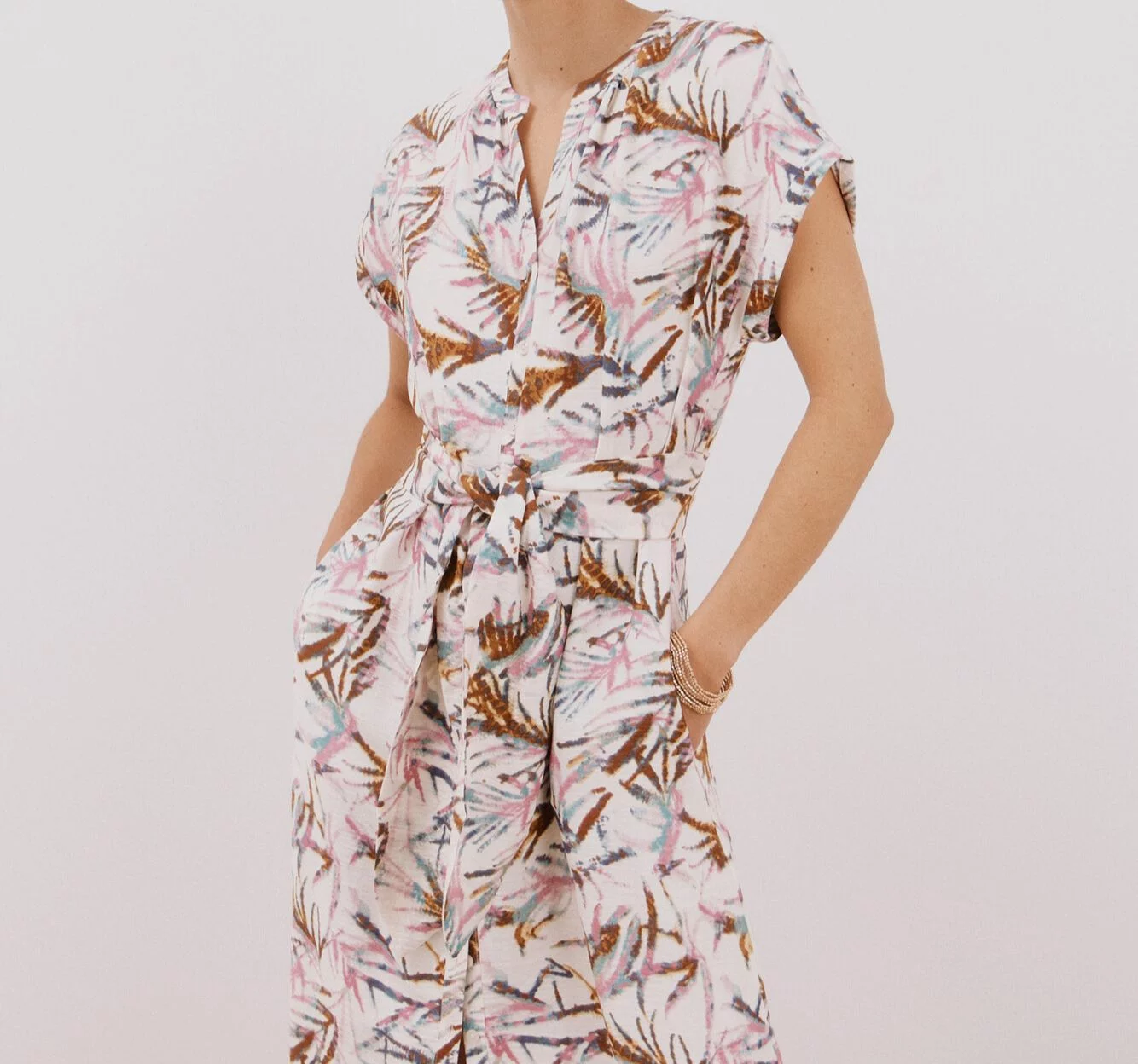 Si buscas un vestido largo con un toque más estructurado pero sin perder el aire desenfadado del estilo boho, el vestido con cinturón de Cortefiel es tu opción ideal. Está confeccionado en tejido rústico confort, con cuello redondo y escote pico. Sus mangas cortas con vuelta y el cierre de botones con lazada en la cintura crean una silueta favorecedora que se adapta a distintas figuras y ocasiones.