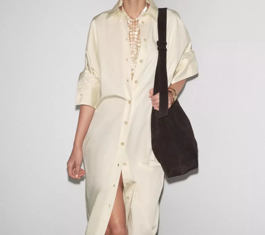 Otra opción irresistible es el vestido camisero de popelín, también disponible en las rebajas de Zara. Se trata de un diseño midi con cuello solapa y manga larga rematada en puño, con un bajo recto que le da un aire limpio y pulido. De color amarillo claro, este modelo es perfecto para quienes buscan un look fresco y luminoso para el verano. Está rebajado a 29,99 euros desde su precio original de 49,95 euros.