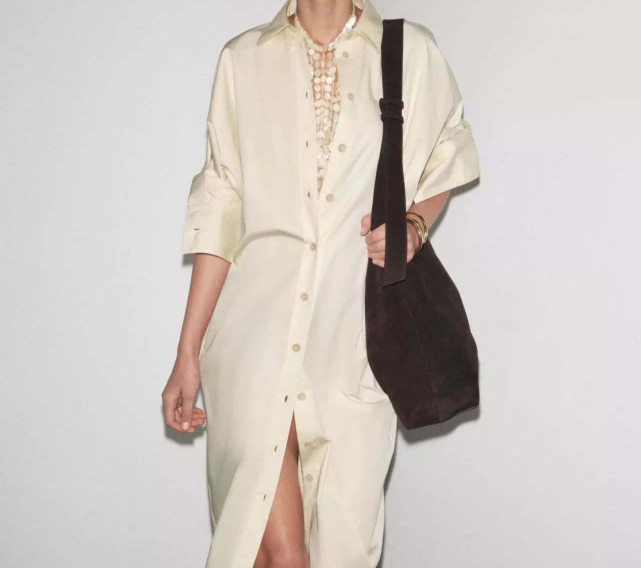 Otra opción irresistible es el vestido camisero de popelín, también disponible en las rebajas de Zara. Se trata de un diseño midi con cuello solapa y manga larga rematada en puño, con un bajo recto que le da un aire limpio y pulido. De color amarillo claro, este modelo es perfecto para quienes buscan un look fresco y luminoso para el verano. Está rebajado a 29,99 euros desde su precio original de 49,95 euros.
