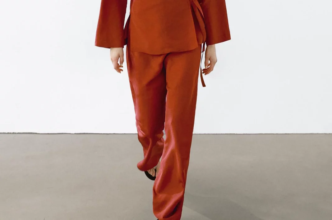 Para aquellas personas que buscan una opción aún más versátil, la marca ha decidido apostar por un pantalón fluido con lino en color caldero. Este modelo no solo es ligero y fácil de llevar, sino que además puedes comprar la parte superior que le hace juego, ya que forma parte de un conjunto, facilitando así la tarea de vestirse bien sin complicaciones. Su diseño de cremallera lateral permite un ajuste cómodo sin romper la armonía visual de la prenda.