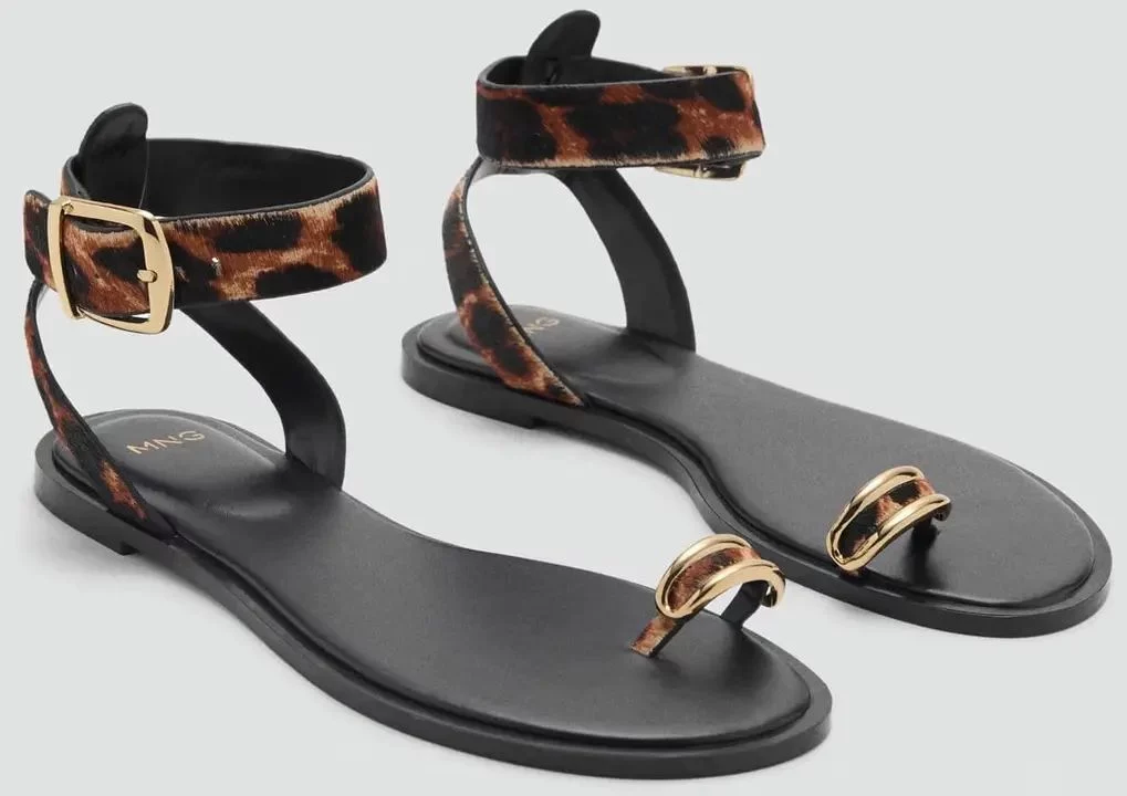 Otro de los grandes aciertos de la marca en estas rebajas son sus sandalias con estampado de leopardo. El animal print sigue siendo tendencia y este modelo es una prueba clara de cómo adaptarlo al calzado de verano sin caer en excesos. Con una base en color negro y tiras estampadas, estas sandalias están fabricadas en piel bovino con pelo, lo que les da un acabado muy especial y una textura única.