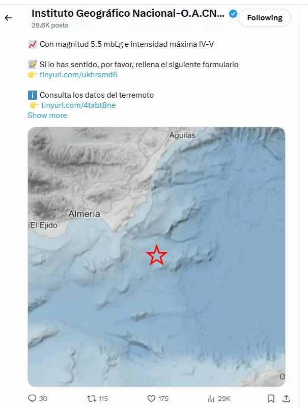 La actualización del IGN confirma que el terremoto fue sentido con intensidad 4 en municipios almerienses como Albox, Huércal-Overa, Garrucha, Pechina, y varias pedanías de Cuevas del Almanzora y Mojácar.