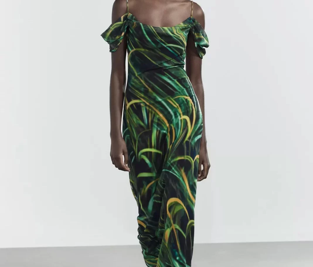 Zara también ha incluido en estas terceras rebajas un vestido ideal para quienes buscan un look relajado sin renunciar al estilo. Este modelo largo tiene escote recto con drapeado, tirantes finos, manga corta y forro interior. El estampado, de inspiración floral, no satura y aporta frescura. Cuesta 9,99 euros, una cifra que parece imposible para una prenda tan completa. El tejido es ligero, ideal para días calurosos, y tiene un movimiento muy favorecedor que acompaña cada paso.