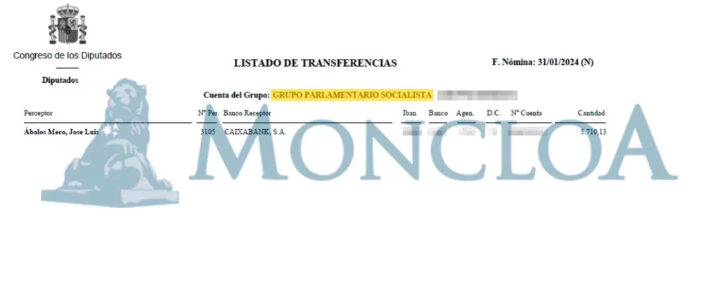 Esto podría explicarse porque sólo se haya computado su sueldo como diputado cuando pasó al Grupo Mixto, ya que anteriormente se ingresaba en una cuenta bancaria del PSOE. El pasado 15 de julio el secretario del Congreso de los Diputados mandaba los datos al Alto Tribunal, pero con un párrafo cuando menos curioso: «Se hace constar que el abono de las retribuciones y otros pagos a los Sres. Diputados no se condiciona a la presentación de un certificado acreditativo de la titularidad de la cuenta bancaria, por lo que no se dispone del referido dato».