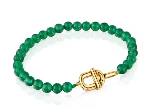 Tous también ha pensado en las amantes del color, y por eso ha incluido en su colección una pulsera elaborada con calcedonias tratadas. Disponible en tonos verde, morado y azul cielo, esta pieza incorpora un cierre en forma de eslabón de plata con baño de oro, aportando un toque sofisticado sin perder frescura. Con un precio de 90 euros, se convierte en una opción ideal para quienes buscan una joya diferente y alegre.
