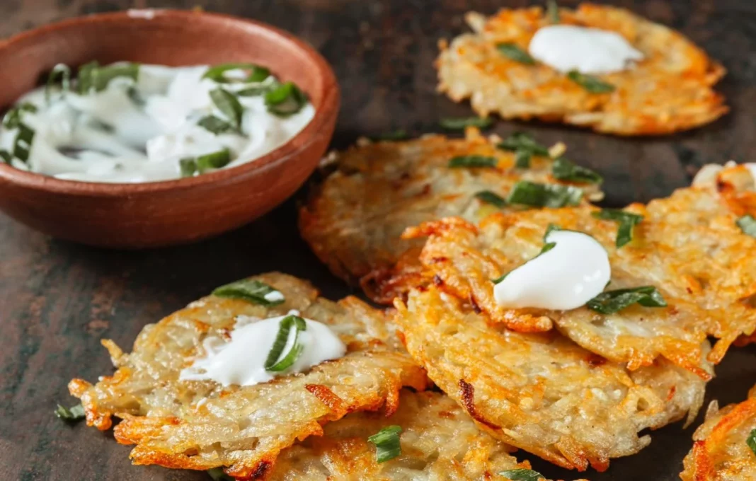 Las tortitas de patata están en su punto cuando crujen al primer bocado y se sienten suaves por dentro. Lo mejor es servirlas recién hechas, aunque también pueden mantenerse calientes en el horno a baja temperatura si se preparan con antelación. Acompañan bien cualquier plato; desde carnes a la plancha hasta huevos pochados o simplemente una ensalada fresca. También son perfectas con un poco de crema agria o una salsa de yogur y limón.