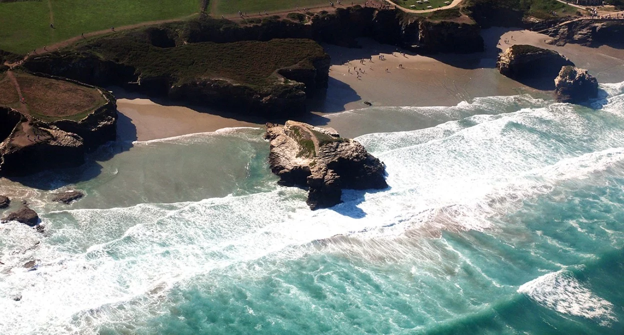 El atractivo de Esteiro no termina en la línea de la marea; su entorno es un fiel reflejo de la Galicia más auténtica y desconocida. La playa está enclavada en un paisaje de prados verdes que caen abruptamente hacia el mar, salpicado de pequeños núcleos rurales y senderos que invitan a explorar los acantilados circundantes. Caminar por la parte alta ofrece unas perspectivas espectaculares del arenal y de la costa de Xove, una sucesión de pequeñas calas, faros y puntas rocosas que conforman un litoral salvaje y lleno de carácter, muy alejado del circuito comercial que rodea a la playa de las catedrales.