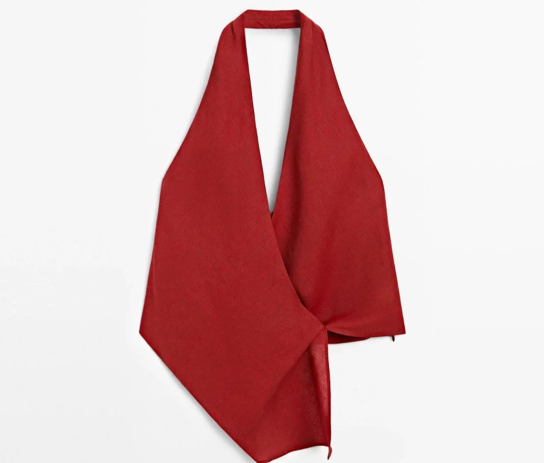 Massimo Dutti demuestra que el rojo también es para el verano. Este top halter en lino tiene un diseño que no pasa desapercibido con un fruncido en el cuello, espalda abierta y una silueta que realza sin apretar. Lo mejor es cómo transforma unos simples vaqueros en un conjunto con carácter, ideal para una cena frente al mar o una velada urbana con amigas. El contraste entre su tono vibrante y la frescura del lino lo convierte en una pieza poderosa y con mucha personalidad.