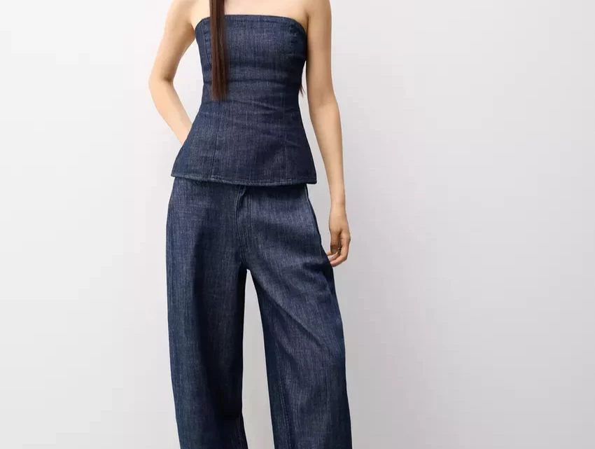 Entre las propuestas más llamativas de la marca está este conjunto vaquero que combina un top bandeau con escote palabra de honor y pantalones tipo ‘barrel’. El top tiene un corte ajustado que realza la figura, confeccionado en denim 100% algodón, y con cierre de cremallera en la espalda. Su precio es de solo 12,99 euros, y para una prenda que transforma cualquier parte superior en un look sofisticado sin sacrificar comodidad, es un valor bastante considerable.