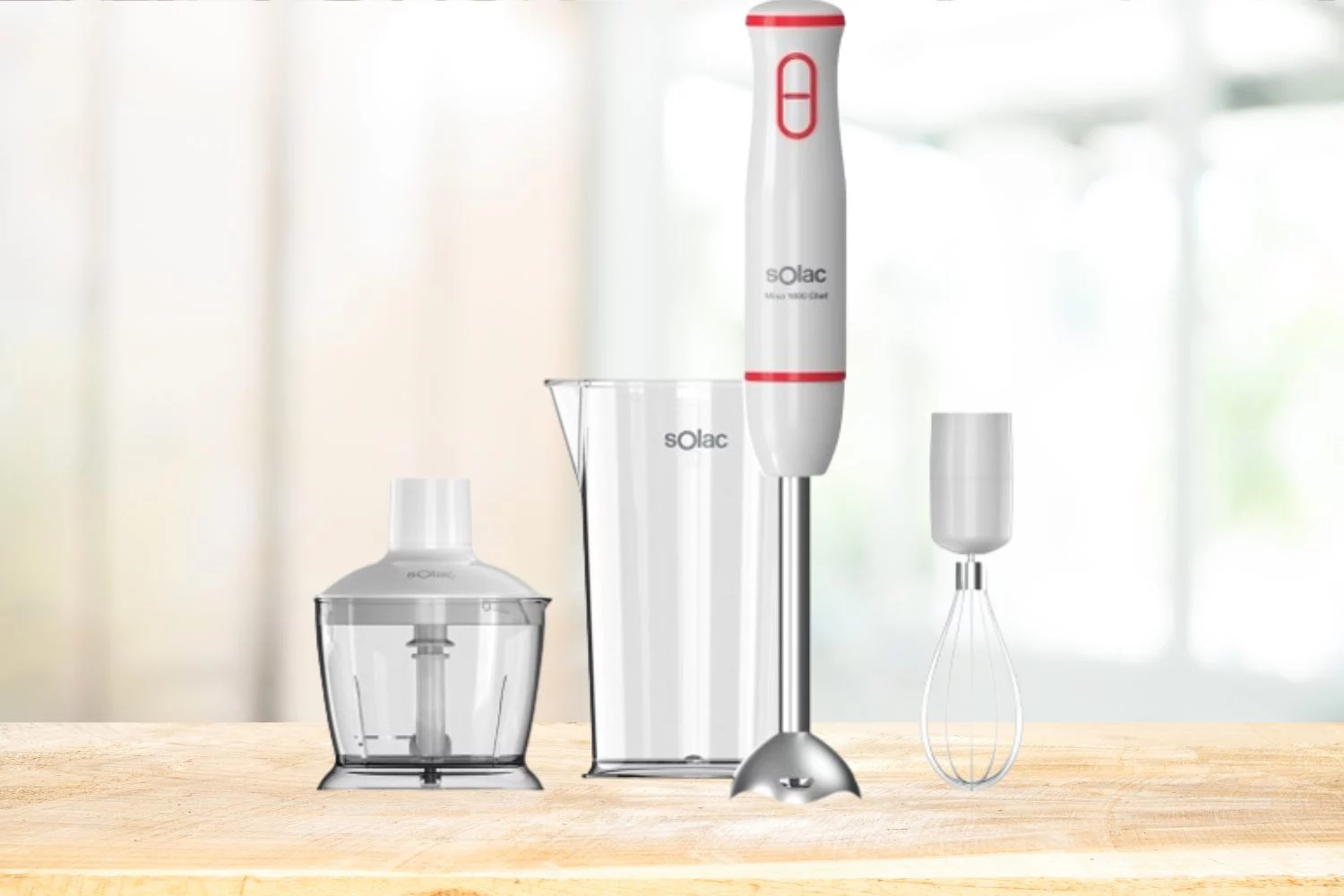 La novedad de oferta que capta la atención de muchos usuarios es el set de batidora de varilla el Mixo 100 Chef de la marca Solac. Esta maravilla posee una potencia de 1000 W que puedes aprovechar al máximo con su función turbo. Además, esta maravilla de combo de la batidora de varilla incluye los siguientes accesorios: