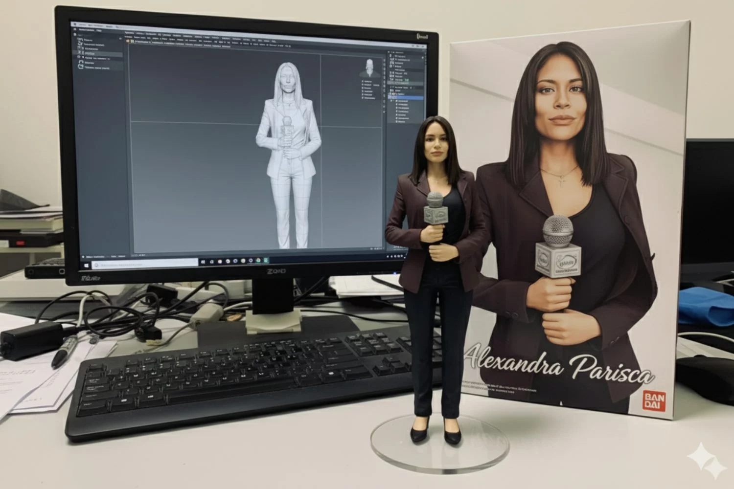 Para convertirte en una figura de acción solo debes copiar y pegar el siguiente prompt: “Crea una figura comercializada a escala 1/7 del personaje de la foto, en un estilo y entorno realistas. Coloca la figura sobre la mesa de un ordenador, utilizando una base circular de acrílico transparente sin ningún texto. En la pantalla del ordenador, muestra el proceso de modelado ZBrush de la figura, que también debe tener las mismas facciones de la foto. Junto a la pantalla del ordenador, coloca una caja de embalaje de juguete estilo Bandai impresa con la ilustración original, y con unos colores parecidos a los del personaje. En la caja debe poner como nombre [NOMBRE ]”.