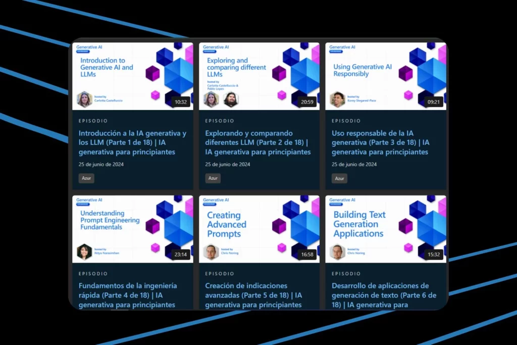 El curso de inteligencia artificial generativa y los Grandes Modelos de Lenguaje (LLM) para principiantes ha logrado cautivar a muchos usuarios desde su lanzamiento en junio de 2024. Sin embargo, en 2025 Microsoft mantiene a flote esta maravillosa alternativa de aprendizaje autodidáctico que te permite administrar tu tiempo según tus necesidades. Con 18 módulos y acceso a más de 900 archivos para hacer prácticas, este curso sigue vigente y se actualiza constantemente por sus expertos en LLM que servirán como herramientas de apoyo para aprender todo lo relacionado con la IA.