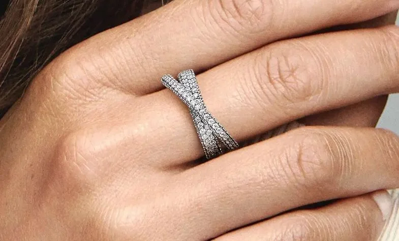 2Anillo Doble Banda Cruzada en Pavé de Pandora
