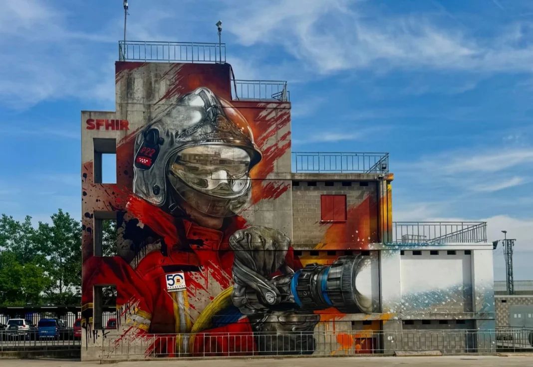 El mural ‘Fireman’, obra del artista Sfhir, decora la fachada norte de la torre de prácticas del Parque 22 de bomberos y nació como homenaje por el 50 aniversario del parque. La imagen de un bombero sujetando una manguera mientras combate el fuego conecta de forma directa con la labor de quienes arriesgan su vida por los demás. El propio artista ha reconocido que convivir con el cuerpo de bomberos durante el proceso fue una experiencia inolvidable, un detalle que se percibe en la fuerza y el respeto que transmite la obra.