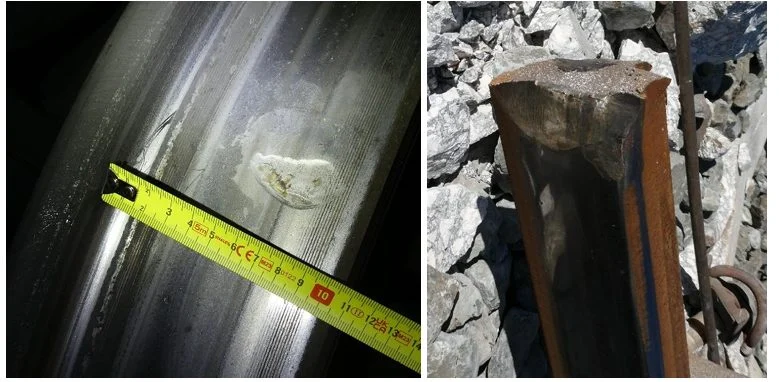 También añaden que «estas muescas en las ruedas y la deformación observada en el carril son compatibles con el hecho de que el carril estuviese fracturado: al estar interrumpida la continuidad del carril, la parte anterior a la rotura recibiría inicialmente el peso total de la rueda, provocando que esa parte del carril descendiese levemente. Como la parte del carril posterior a la rotura no estaría actuando solidariamente con la parte anterior, se produciría momentáneamente un escalón entre los dos lados de la fractura, que golpearía la llanta de la rueda«.