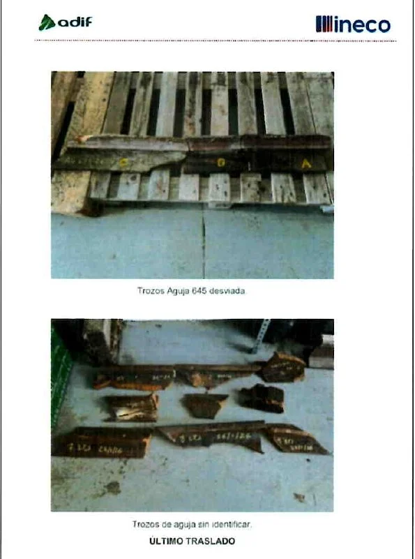 Entonces los investigadores le preguntaron si además de estas vías «se ha trasladado algún otro material de la zona del accidente». Ángel A. respondió que «la noche del viernes al sábado (30 al 31 de enero de 2026), la del lunes al martes (2 al 3 de febrero de 2026) y la del martes al miércoles (4 al 5 de febrero), se trasladaron traviesas y parte del desvío de acero que quedaba en la zona».