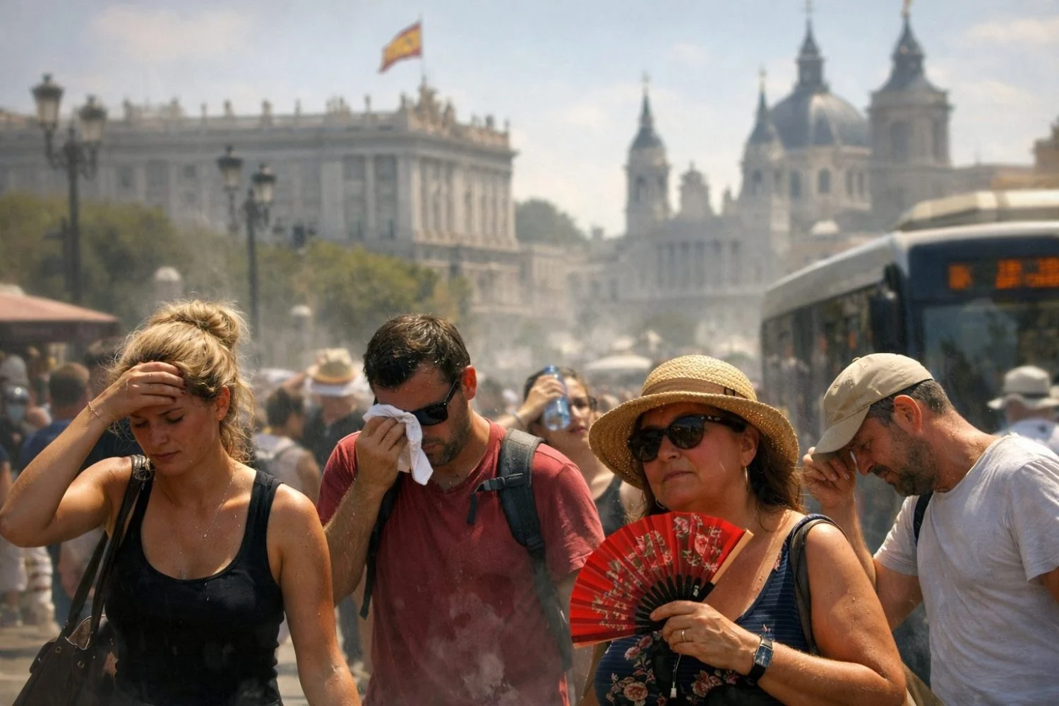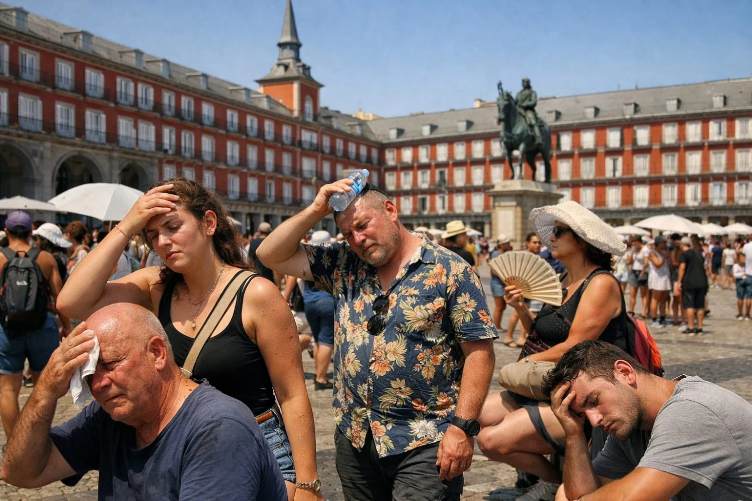 Caminar por la Gran Vía durante una ola de calor prematura en mayo es exponerse a una radiación directa y reflejada que puede superar los cuarenta grados a nivel de suelo. El granito y el asfalto actúan como baterías térmicas que absorben energía durante doce horas y la irradian sin descanso.