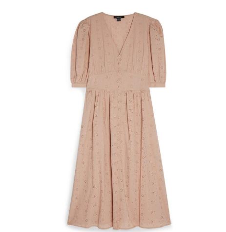 Hace ya unos tres años más o menos que el estilo retro y vintage se instauró en nuestras vidas. Y lo hizo para quedarse. Y por eso, mismamente, Primark nos lo recuerda con este modelo de vestido midi con botones delanteros y bordados en color rosa. Una estupenda apuesta si te va lo antiguo que la marca ha hecho muy bien y a muy buen precio, pues el vestido cuesta tan solo 22 euros.